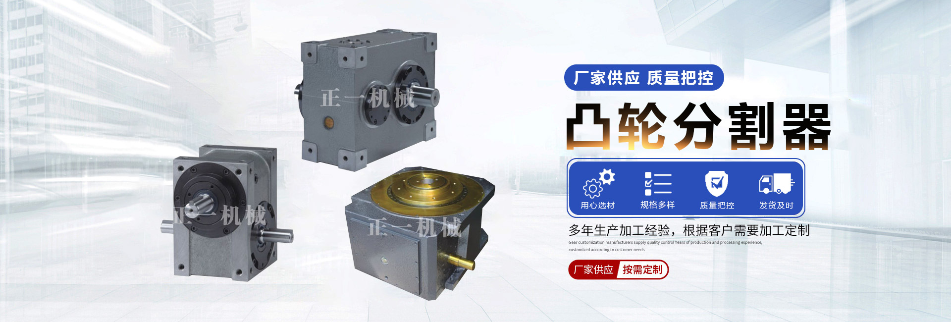 诸城市正一机械有限公司是一家集科研、加工制造凸轮及分割器为一体的公司。公司主要从事生产高精度凸轮系列为主导产品,目前已形成弧面式、平行式、圆柱式三大类别,另可根据用户需求加工一些特、异形凸轮,满足一些用户特殊需求。